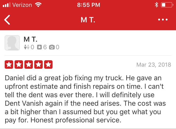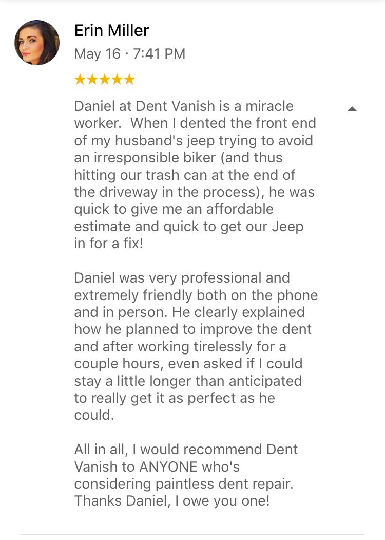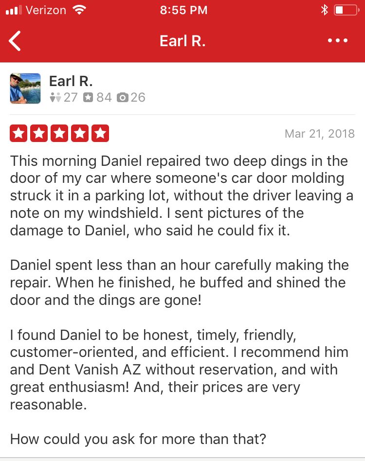 Thank you to all of our customers who have put your trust in the Dent Vanish AZ team!